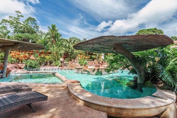 Then you can relax EN the mineral hot springs DE Los Cañones, DE rodas of lush tropical vegetation, ideal for resting body and mind. To complete the day, you will enjoy a typical Costarric ENse lunch in a natural and peaceful atmosphere. This combination DE exclusive services and direct contact with nature makes this experience truly unforgettable.